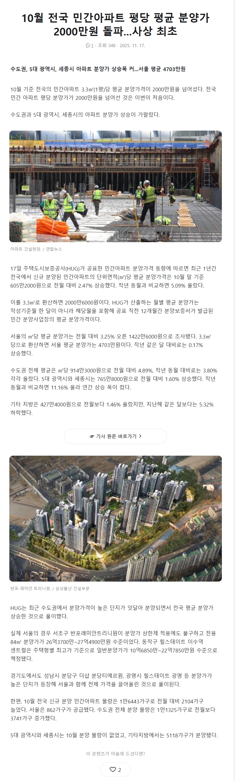 10¿ù Àü±¹ ¹Î°£¾ÆÆÄÆ® Æò´ç Æò±Õ ºÐ¾ç°¡ 2000¸¸¿ø µ¹ÆÄ...»ç»ó ÃÖÃÊ