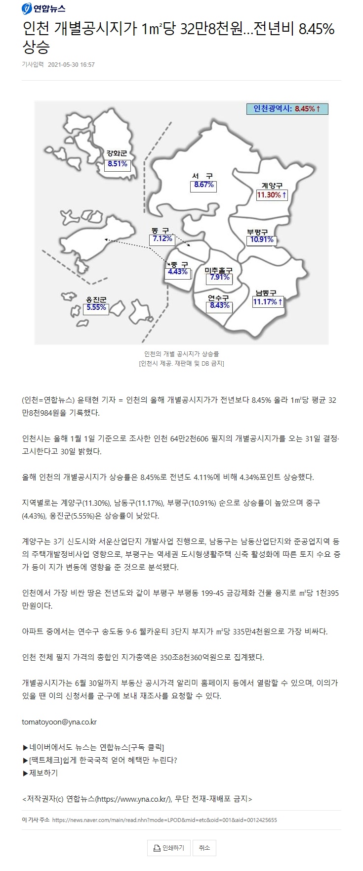 ÀÎõ °³º°°ø½ÃÁö°¡ 1§³´ç 32¸¸8õ¿ø¡¦Àü³âºñ 8.45% »ó½Â