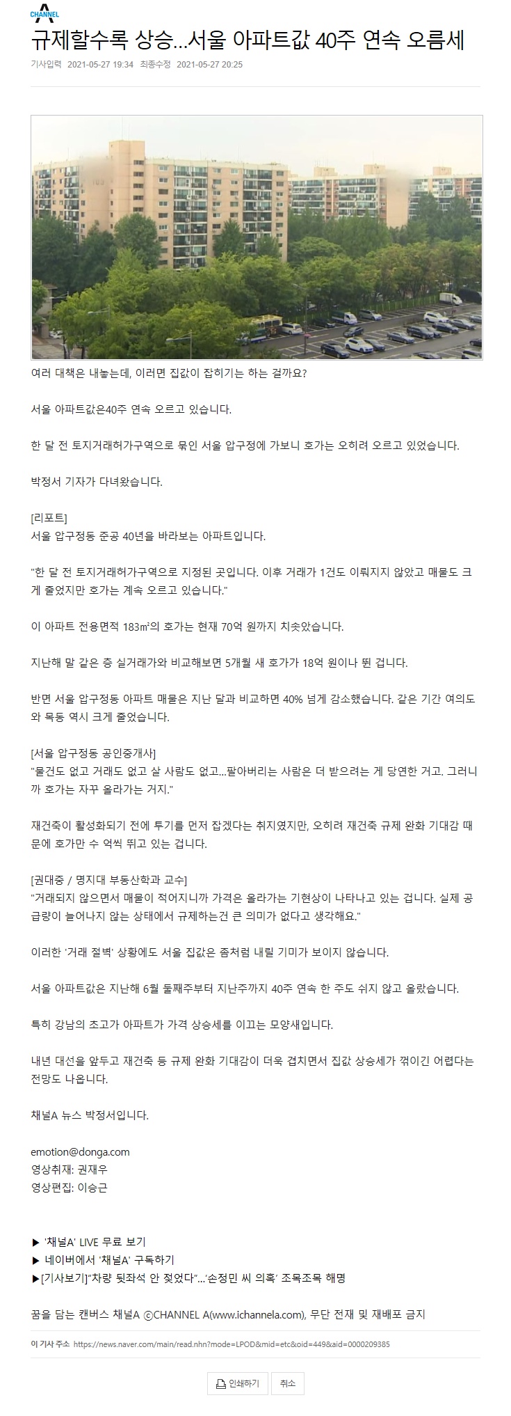 ±ÔÁ¦ÇÒ¼ö·Ï »ó½Â..¼¿ï ¾ÆÆÄÆ®°ª 40ÁÖ ¿¬¼Ó ¿À¸§¼¼