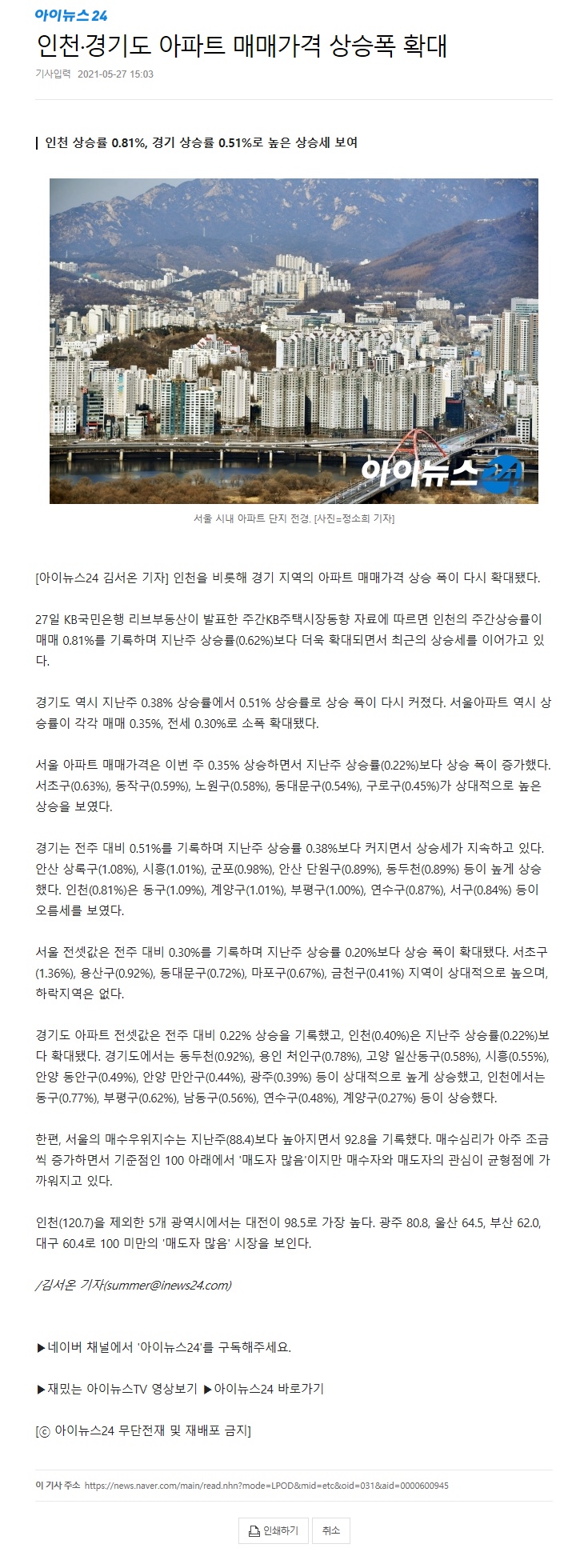 ÀÎõ¡¤°æ±âµµ ¾ÆÆÄÆ® ¸Å¸Å°¡°Ý »ó½ÂÆø È®´ë