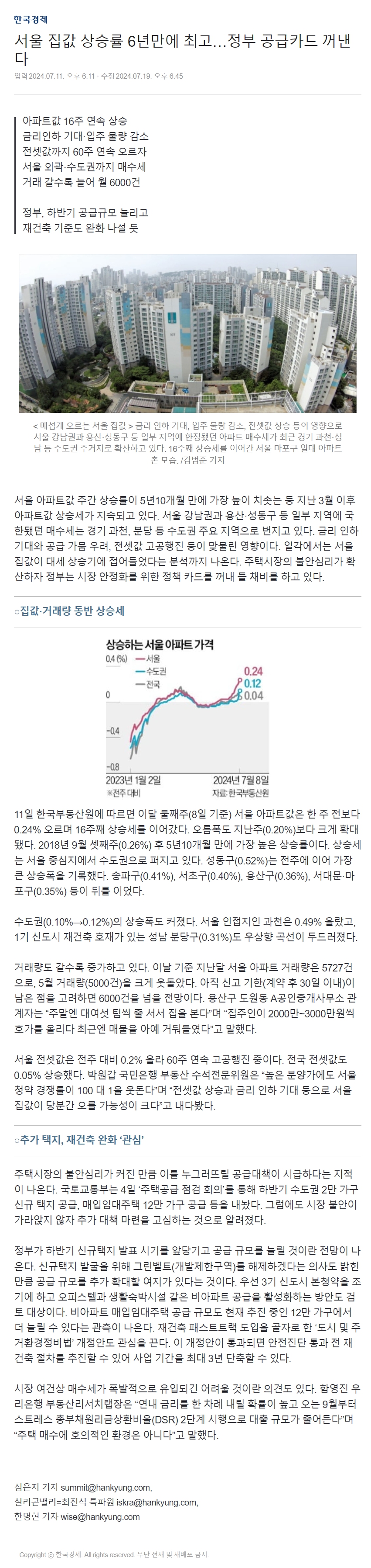 ¼¿ï Áý°ª »ó½Â·ü 6³â¸¸¿¡ ÃÖ°í¡¦Á¤ºÎ °ø±ÞÄ«µå ²¨³½´Ù